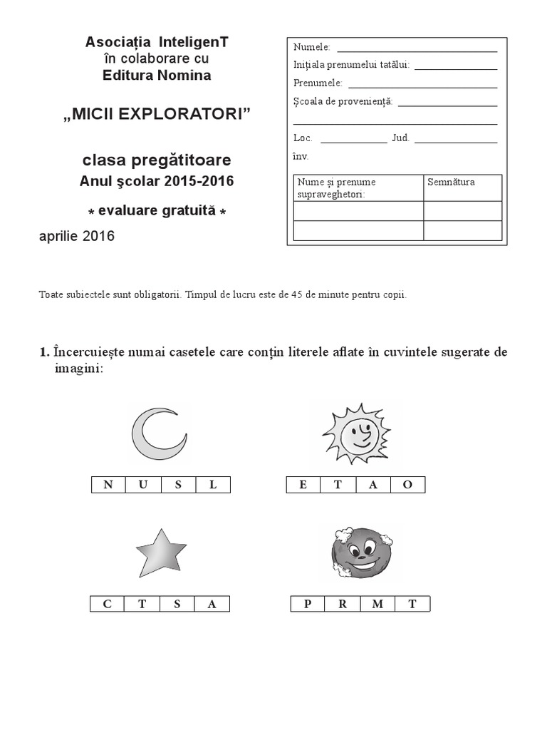 Clasa Pregatitoare Subiecte Concurs