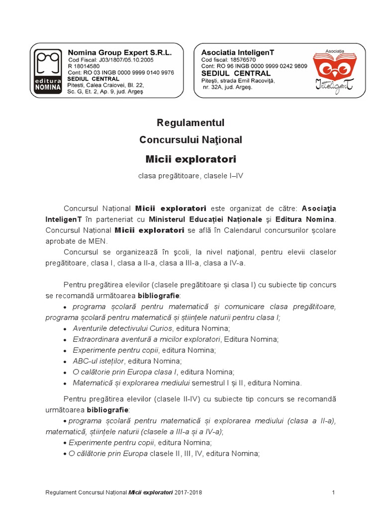 Regulament Concursul Național Micii Exploratori 2017 2018