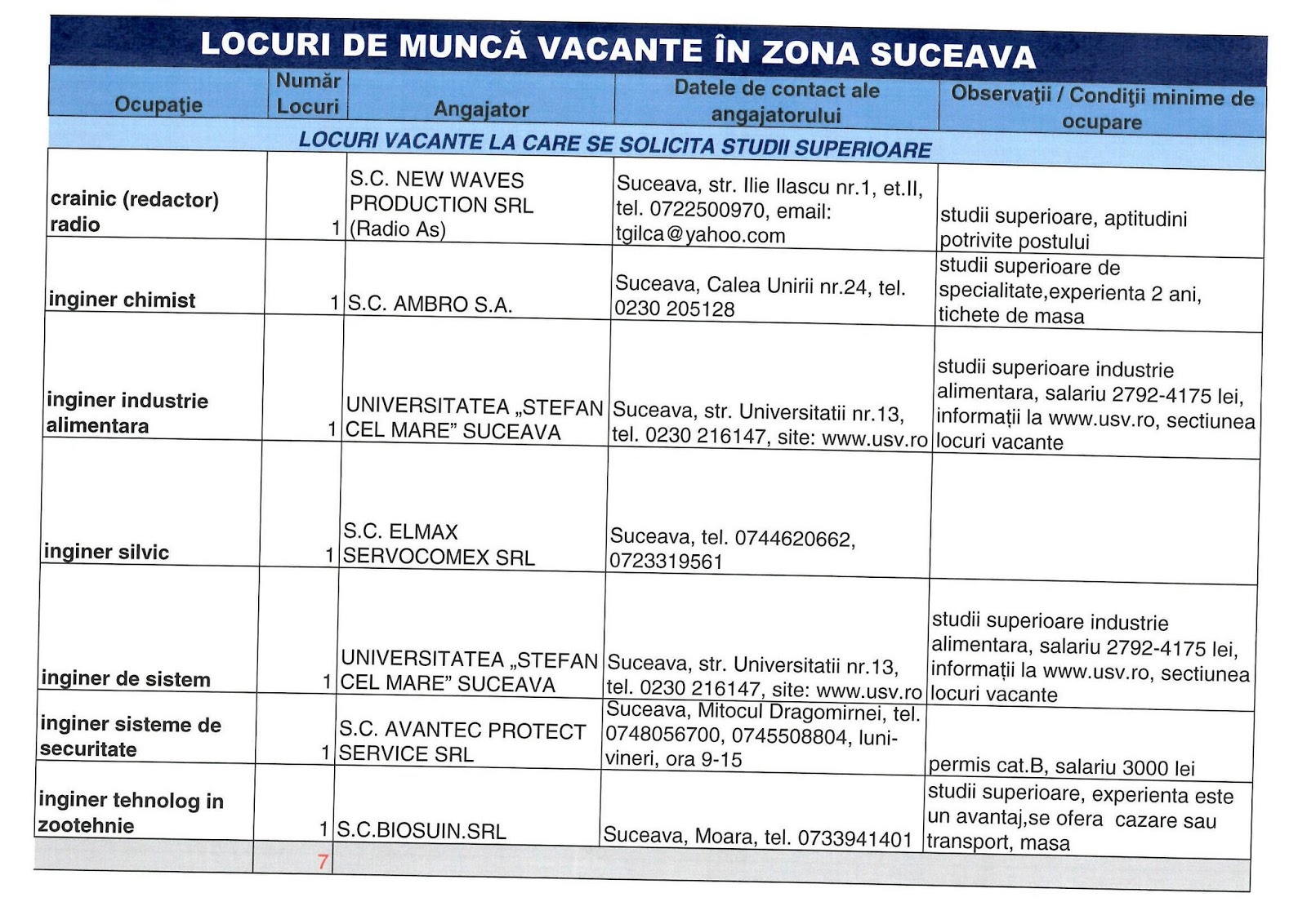 Locuri De Muncă Vacante In Suceava 8 August 2019 Stiri Suceava Stirisuceava Net